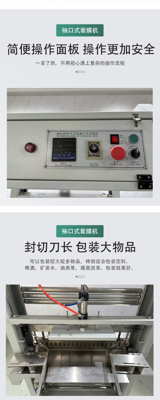 按自动化程度分类:可分为半自动袖口式热收缩包装机和全自动袖口式热收缩包装机。半自动需人工辅助完成产品放置或封口操作,适用于中小规模生产;全自动则自动化完成输送、封切、收缩等全流程,适合大规模生产。
