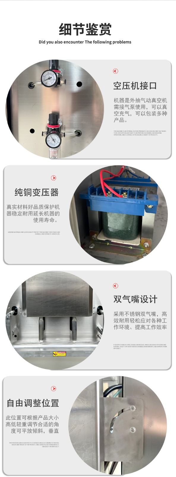 硬件适配保障:这类设备的外壳和真空室多采用不锈钢材质,抗腐蚀、不易生锈,即便接触酱料、海鲜等带水分的物料,也能稳定运行,且清洁方便,可避免潮湿环境对机器的损坏。部分机型还针对液态物料优化了密封结构,防止包装时液体渗漏影响设备部件。