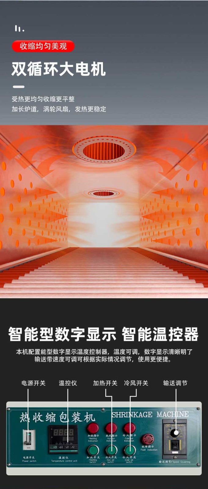 冷却与输出:收缩后的包装经冷却系统快速定型后自动输送至成品区。