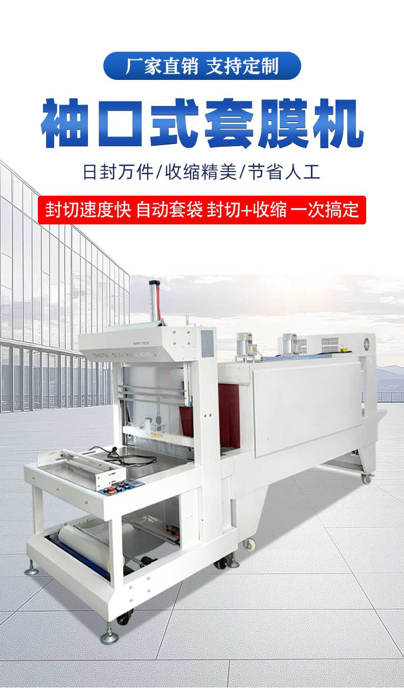 袖口式包装机是一种高效的包装设备,主要通过热收缩膜对产品进行袖口式包裹,结合封切与热风收缩工艺,形成无底托或带底托的立体包装效果。