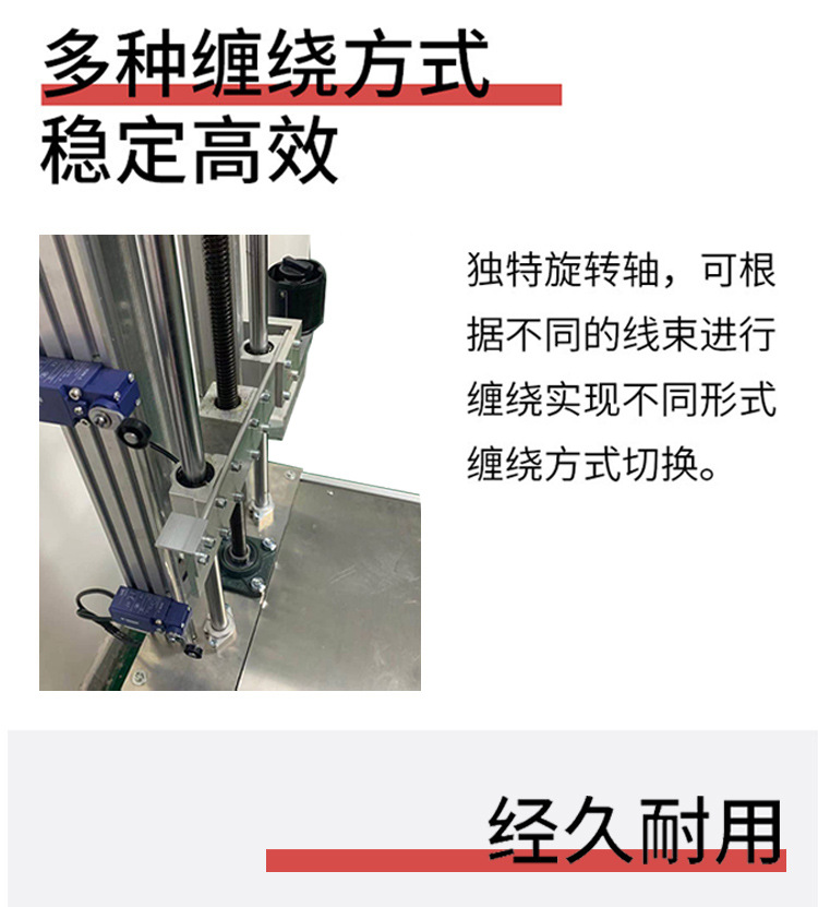 在灵活性层面,它无需提前预设大量复杂参数,操作人员仅需简单培训,就能快速完成不同尺寸、不同形状产品的切换作业。通过人工微调定位与缠绕角度,实现高效适配,完美契合多品种、小批量的生产模式。同时,设备机身设计紧凑,无需配套自动化输送线,即便车间场地狭窄,也能灵活摆放,甚至可搭配脚轮实现移动作业,进一步拓展应用场景。