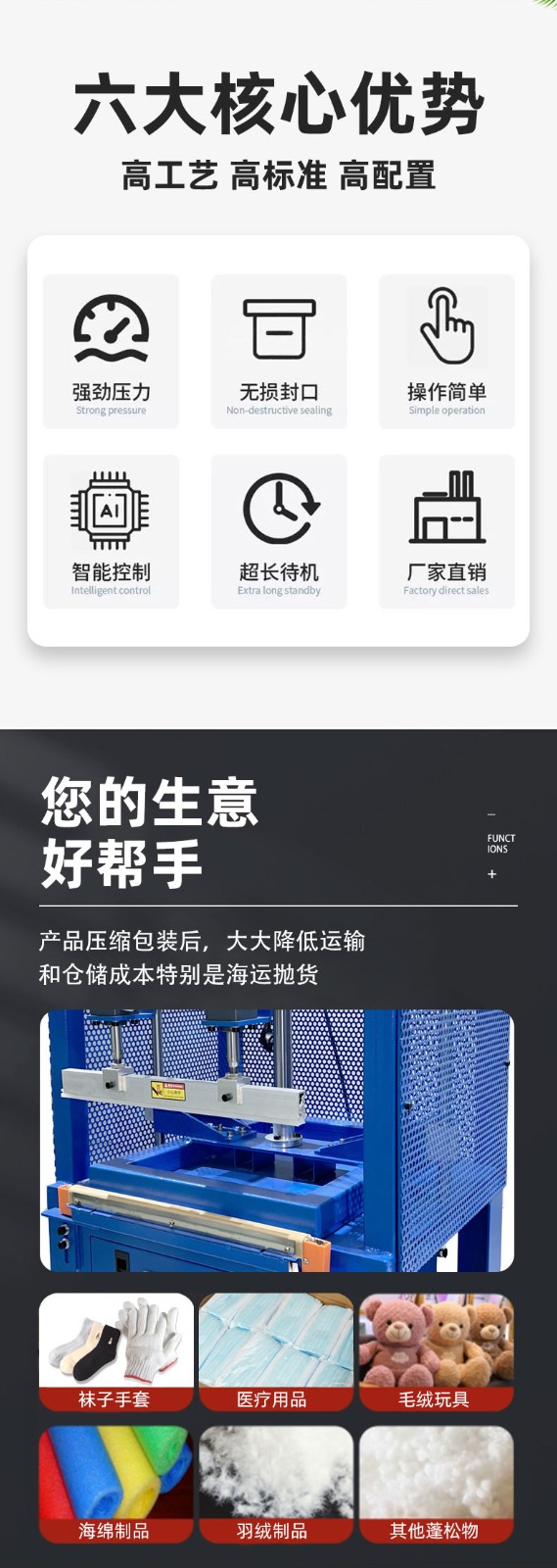 不同材质的包装材料由于其化学结构和物理性质不同,在压缩封口包装机上的热封温度存在明显差异,以下是一些常见包装材料的热封温度范围及特点: