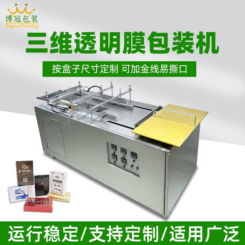 半自动三维包装机(又称半自动透明膜裹包机、半自动烟包机)是医药、食品、日化、电子等行业中用于提升产品包装档次的核心设备,其核心是通过 BOPP 透明膜(或含铝箔的复合膜)对产品进行三维立体裹包,形成类似香烟盒外层的紧致、透明(或半透明)包装,兼具防尘、防潮、防伪及外观美化功能。其 “半自动” 特性主要体现在需人工辅助上料,后续核心包装工序全自动完成,平衡了设备成本与包装效率,适合中小批量或多规格产品的包装需求。