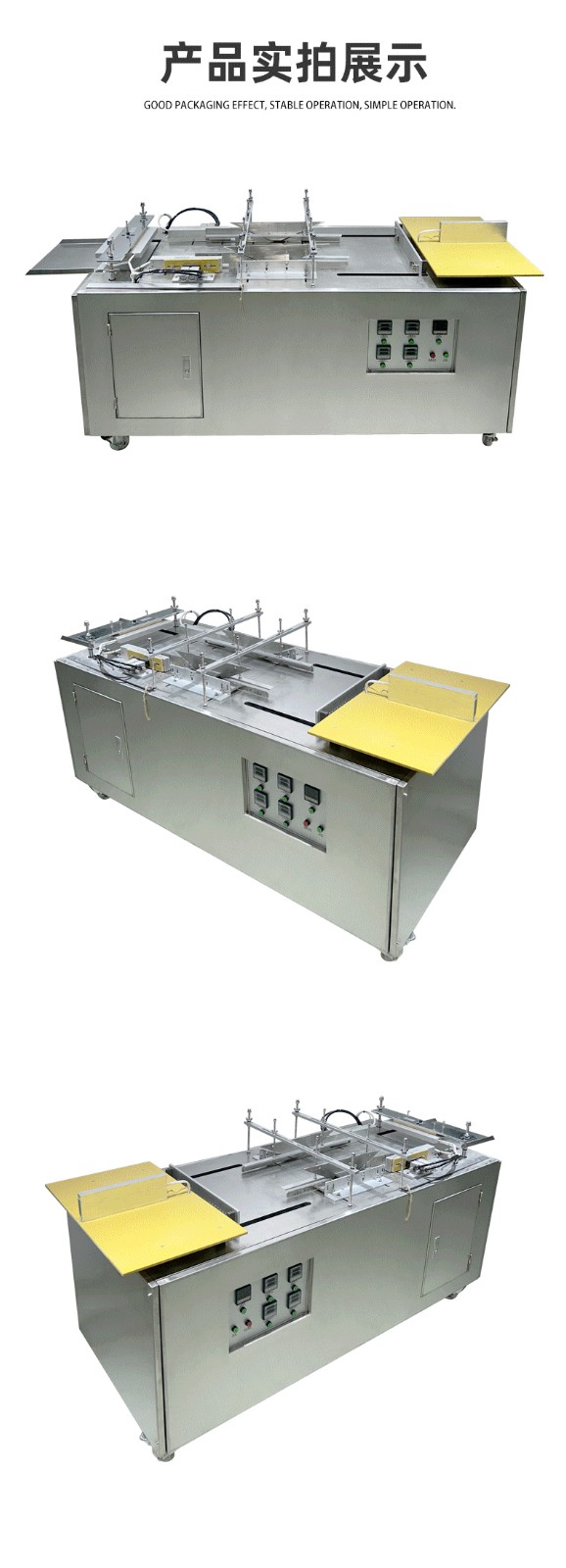 - 人工上料定位:操作人员将单个或成组的产品(如药盒、保健品盒、化妆品礼盒)放入设备的定位模具中(模具可根据产品尺寸更换),确保产品位置精准(这是 “半自动” 与 “全自动” 的核心区别,全自动设备通过输送带实现自动上料);