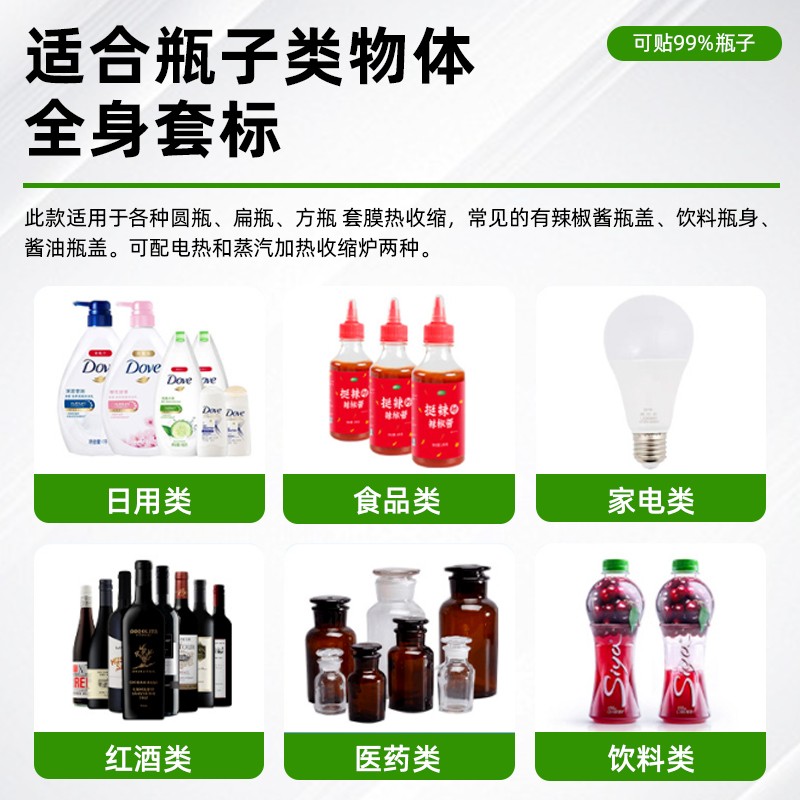 - 推送机构根据容器移动速度同步向下推送标签,确保标签在容器移动过程中 “无卡顿、无偏移” 地套合,套标位置误差≤±0.5mm。