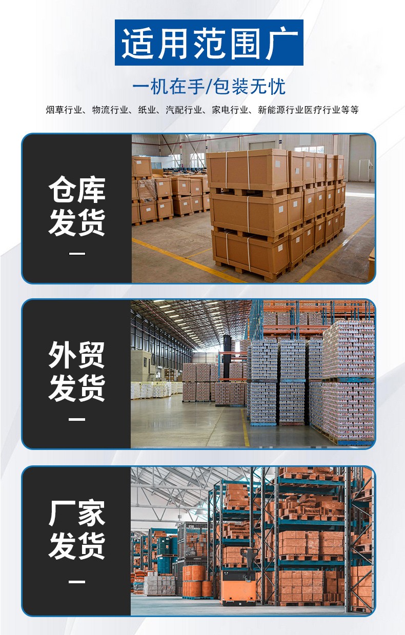 质量标准化束紧力、粘合温度由 PLC 精准控制,每道捆扎质量一致,避免人工打包 “松紧不一” 导致的货物散落外贸出口、长途海运等对打包稳定性要求高的场景