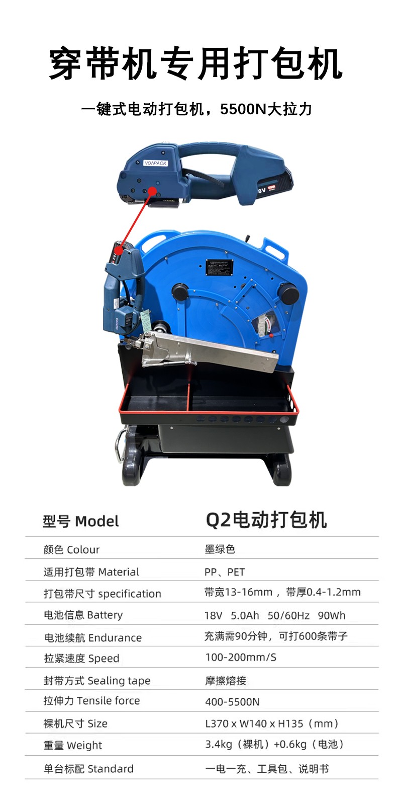 4. 自动切断与复位:粘合完成后,切刀机构精准切断带子,同时送带机构自动将下一段带子送至待穿位置,完成一个循环,等待下一批货物。