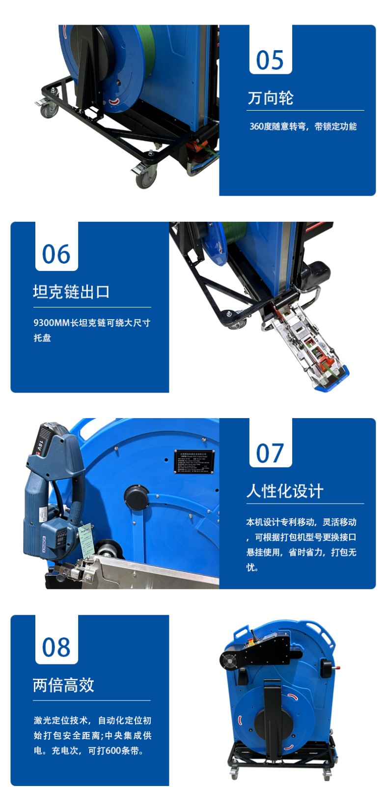设备围绕 “货物 - 托盘一体化固定” 展开,核心功能覆盖打包全环节,无需人工干预关键动作: