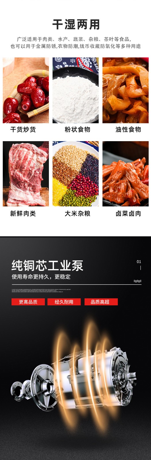 - 真空泵规格:这是决定效率的基础。真空泵的抽气速率(单位 m³/h)越快,达到目标真空度的时间就越短,单次包装周期随之缩短。