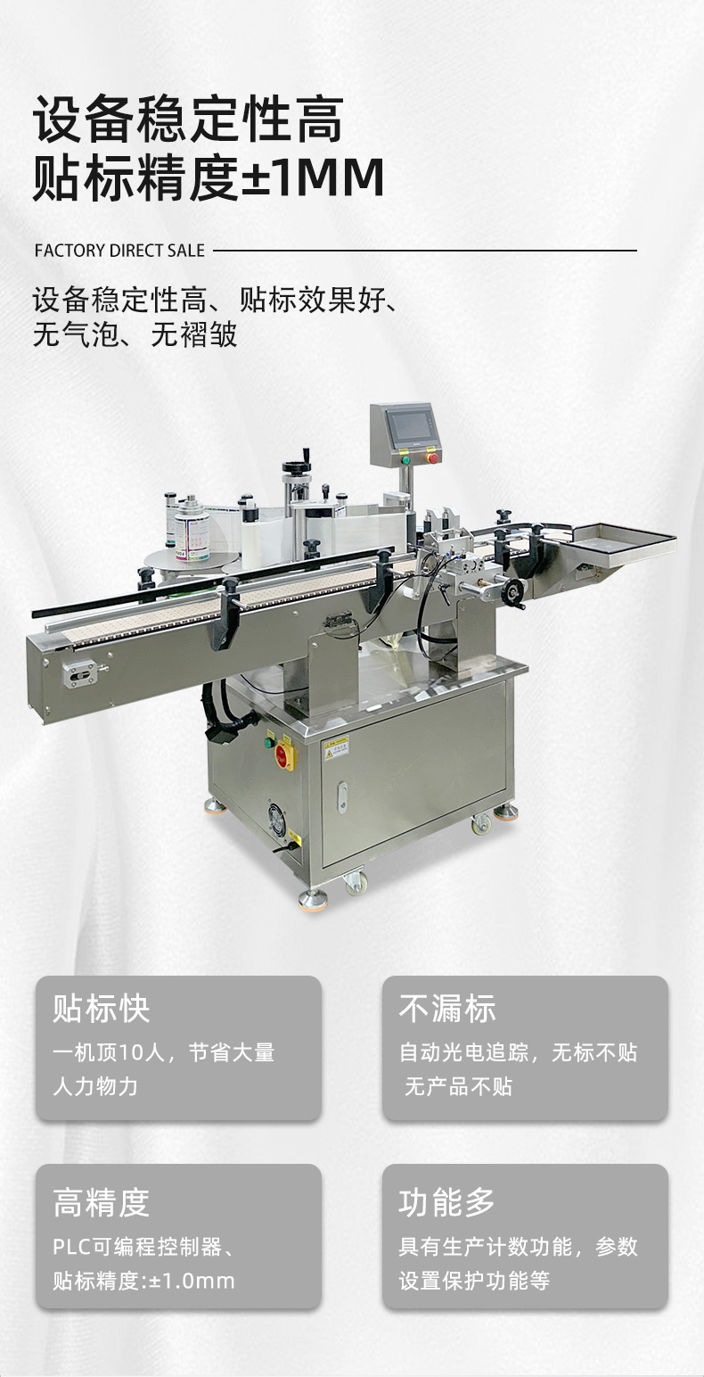 圆瓶定位贴标机的核心优势是精准度高、适配性强、自动化程度高,其效率则体现在稳定的贴标速度和低故障率上,能显著降低人工成本并提升包装一致性。