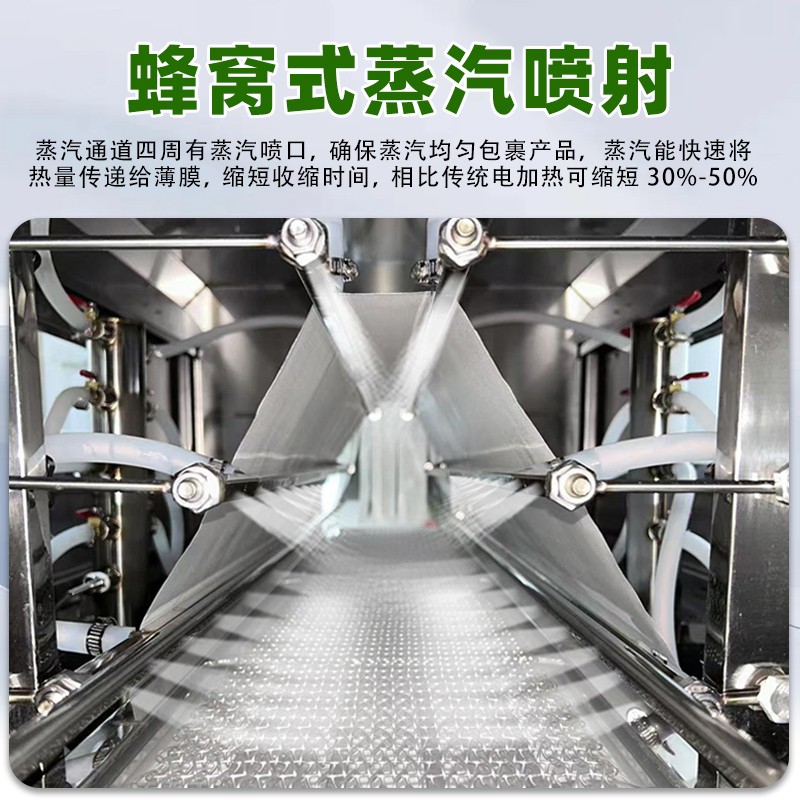 - 收缩室:产品在输送系统的带动下进入收缩室,与蒸汽充分接触,使包装材料收缩。收缩室的设计需保证蒸汽均匀分布。