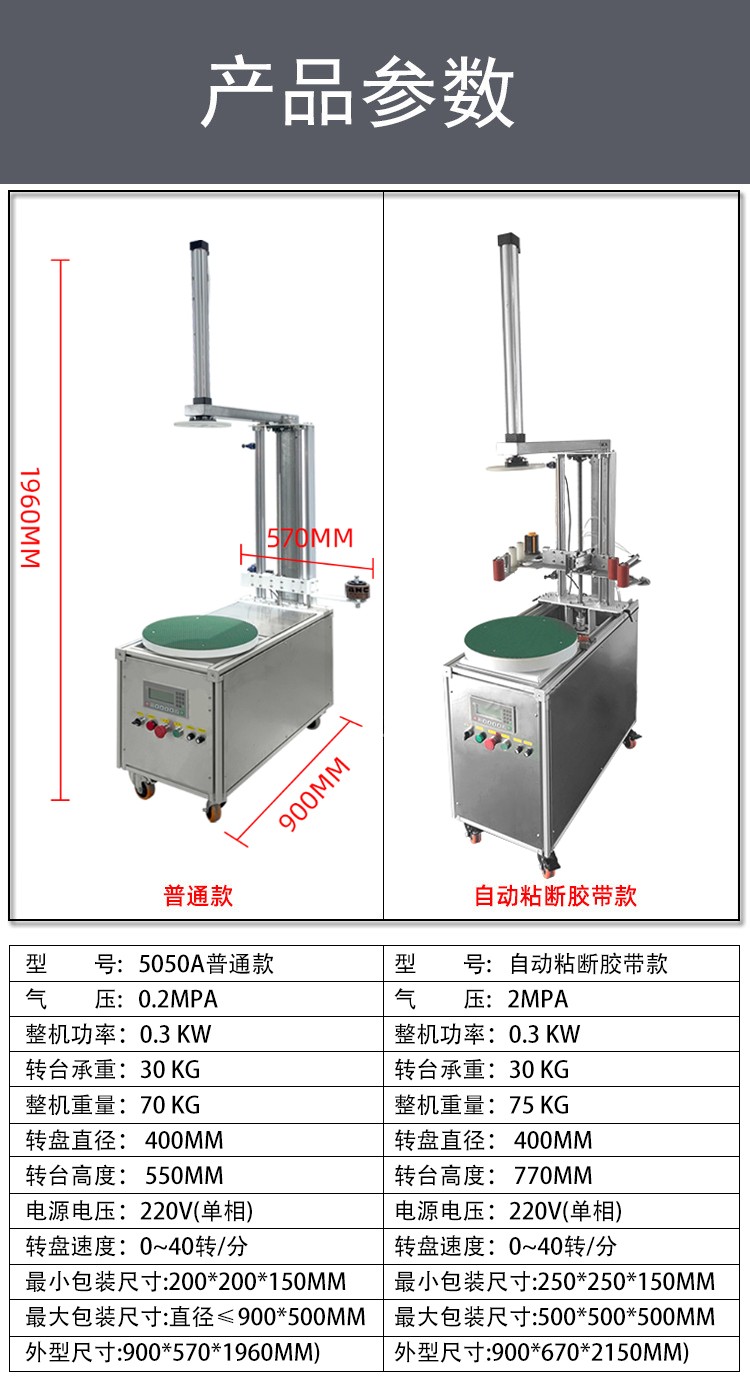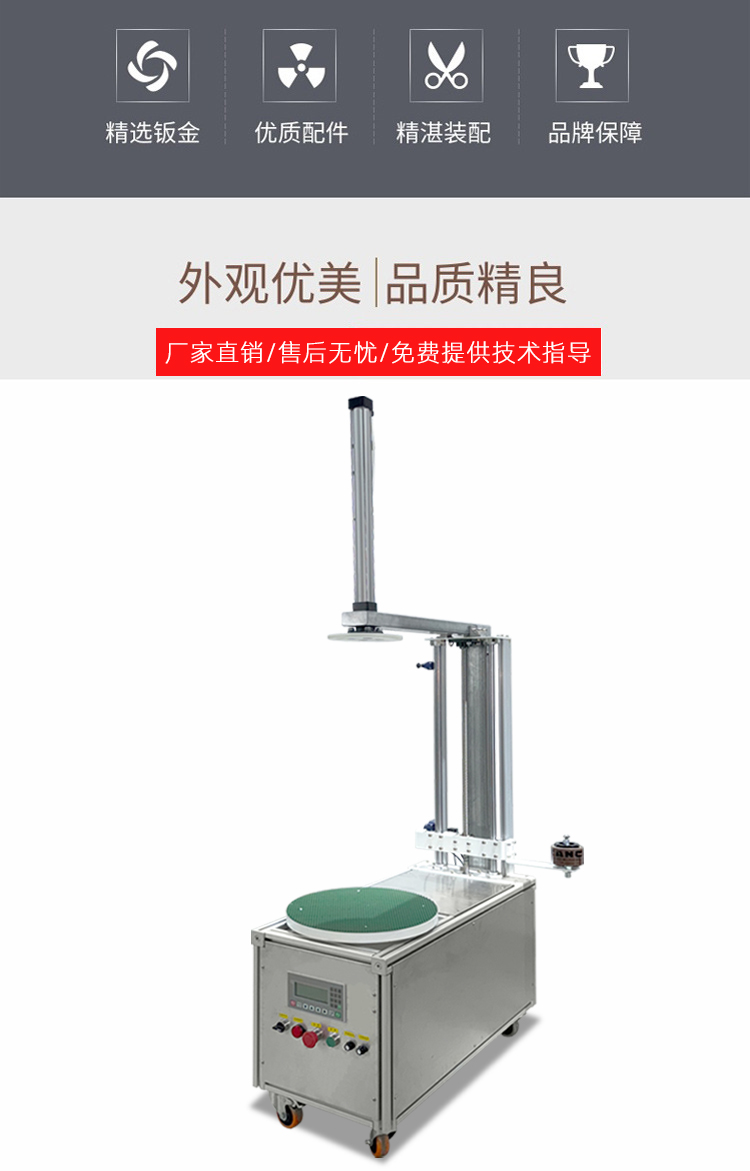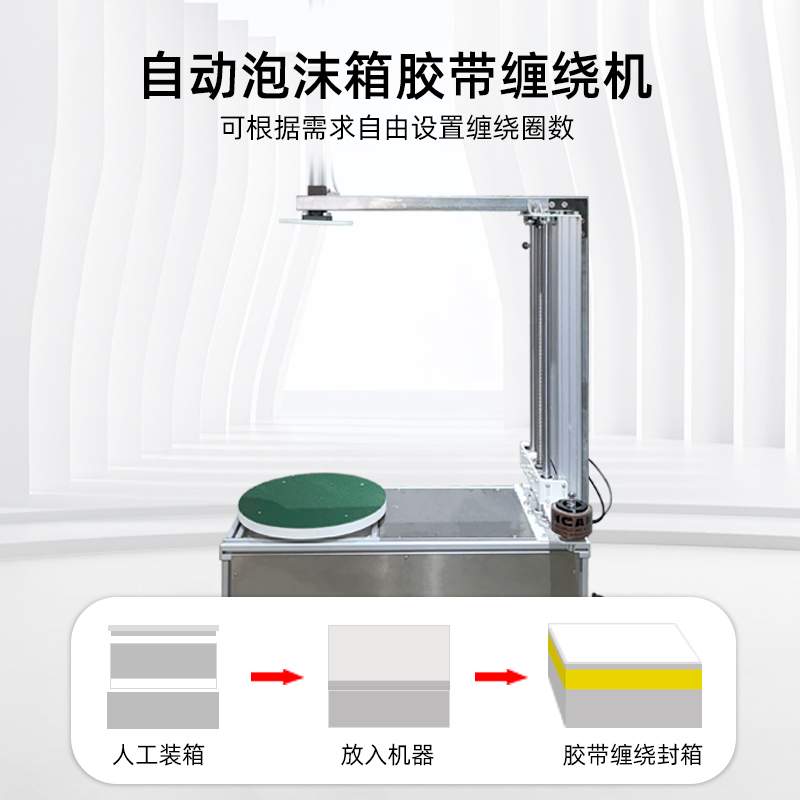 - 缠绕与人工干预:缠绕过程中,部分机型需要人工辅助旋转产品,或调整胶带的缠绕角度;当达到预设的缠绕层数后,机器停止动作。